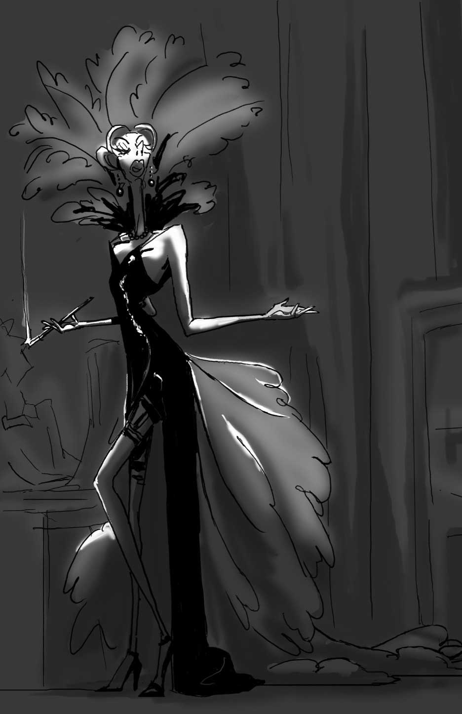 This was a quick gesture sketch that I fleshed out a little more, but I also ended up really liking the dramatic lighting on her and her attitude.