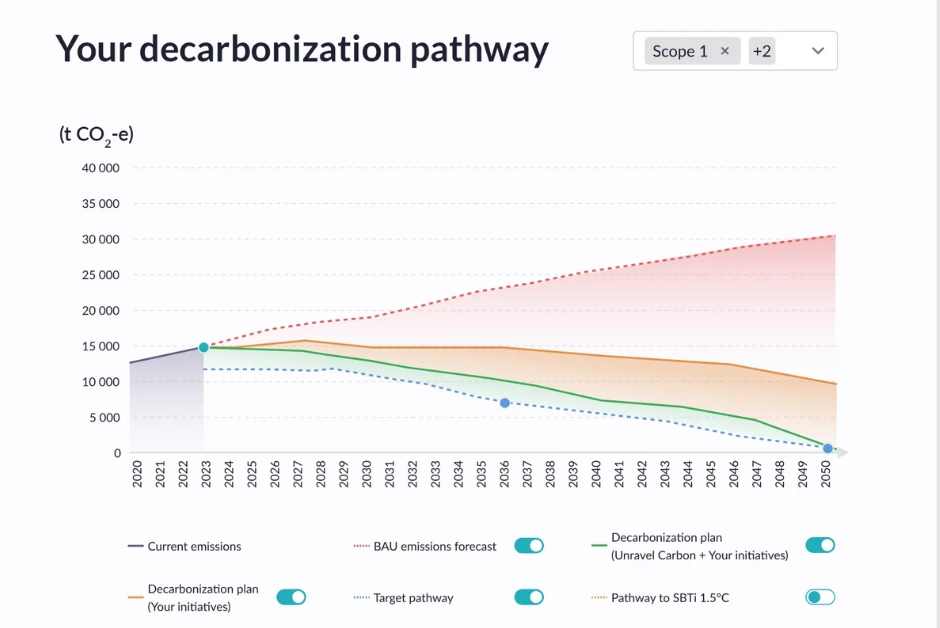 “Our process is as straightforward as uploading a CSV file onto the platform. It’s a clear box where you can see everything being measured. It’s auditable and interrogable,” Marc adds. He explains that Unravel makes decarbonisation accessible to SMEs who aren’t equipped to onboard or finance a team of consultants for months on end.
