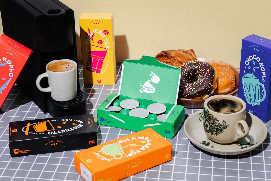 “It bugged me that there was this gap in the market,” Simon says. He wondered: what if the flavours of kopi could be captured – using the same type of beans, the same roasting technique – in compostable coffee capsules to bring the kopitiam experience into private spaces?